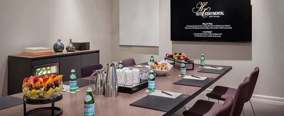 The meeting room opens onto our conference lobby, giving participants a chance to stretch their legs, enjoy a cup of coffee or take a breather between discussions. Lunch can be served in the meeting room or Theatercaféen. This is an excellent example of the variation and flexibility provided by Continental Event.